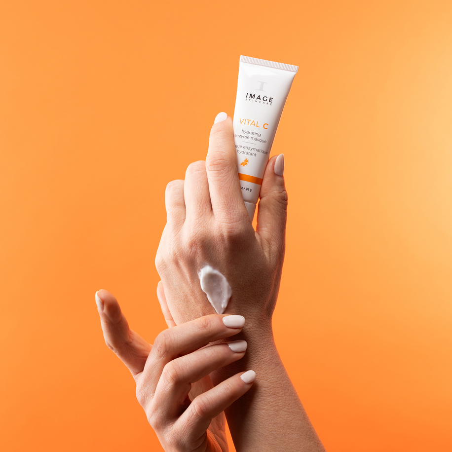 Gyors hámlasztó kezeléshez vidd fel az Ageless total resurfacing masque pakolást megtisztított bőrre és rövid ideig masszírozd. Erre bő mennyiségben rétegezd fel a VITAL C hydrating enzyme masque pakolást. Hagyd fenn 5-15 percig. Langyos vízzel öblítsd, utána pedig hideg vízzel paskold meg a bőrt. Zárd a kezelést a kedvenc IMAGE szérummal.